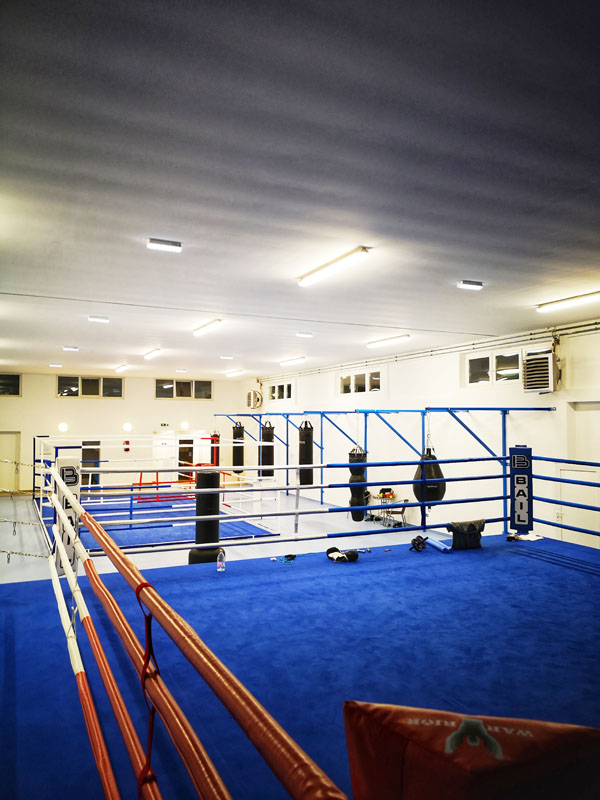 Az épületben helyet kapott egy 5×5 méteres gyakorlóring, egy 10×10 méteres tatami, egy 7,0×7,0 méteres AIBA minősítésű versenyring, 14 db box-zsák, 2 db fedeles labda állvánnyal, körtezsákok, illetve 4 db ütőfal. A fejlesztés folytán a terem számos küzdősport (Jiu-Jitsu, Capoeira, Kempo, Muay thai, Kick Box, Thai Boksz, Kung-Fu, Karate, Aikido, Dzsudo, Whing Chun, Taekwondo, Ökölvívás) edzéseinek, versenyeinek megtartására vált alkalmassá. Kialakításra került egy funkcionális edzőfelszereléseket és keresztcsigát tartalmazó 70 m2-es konditerem, valamint szauna is.